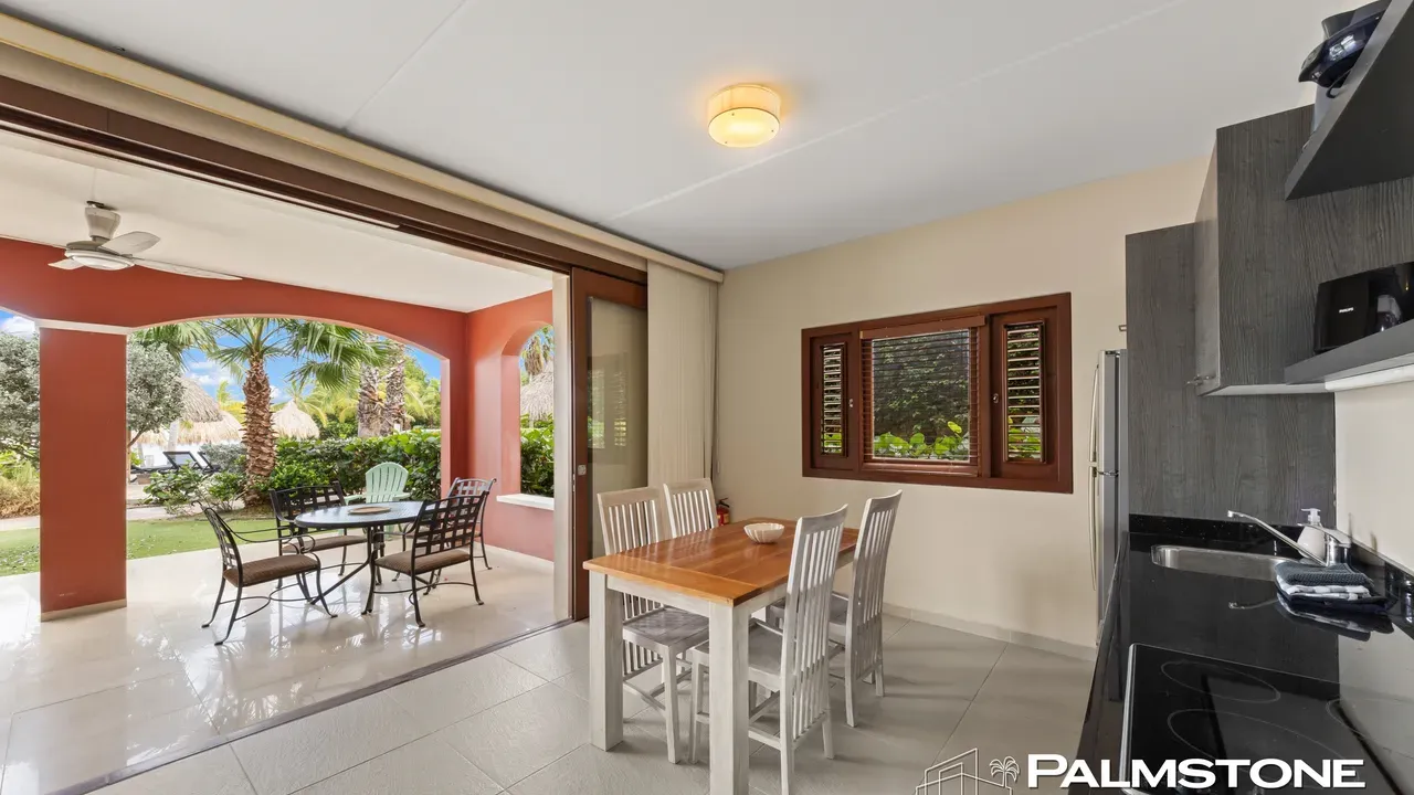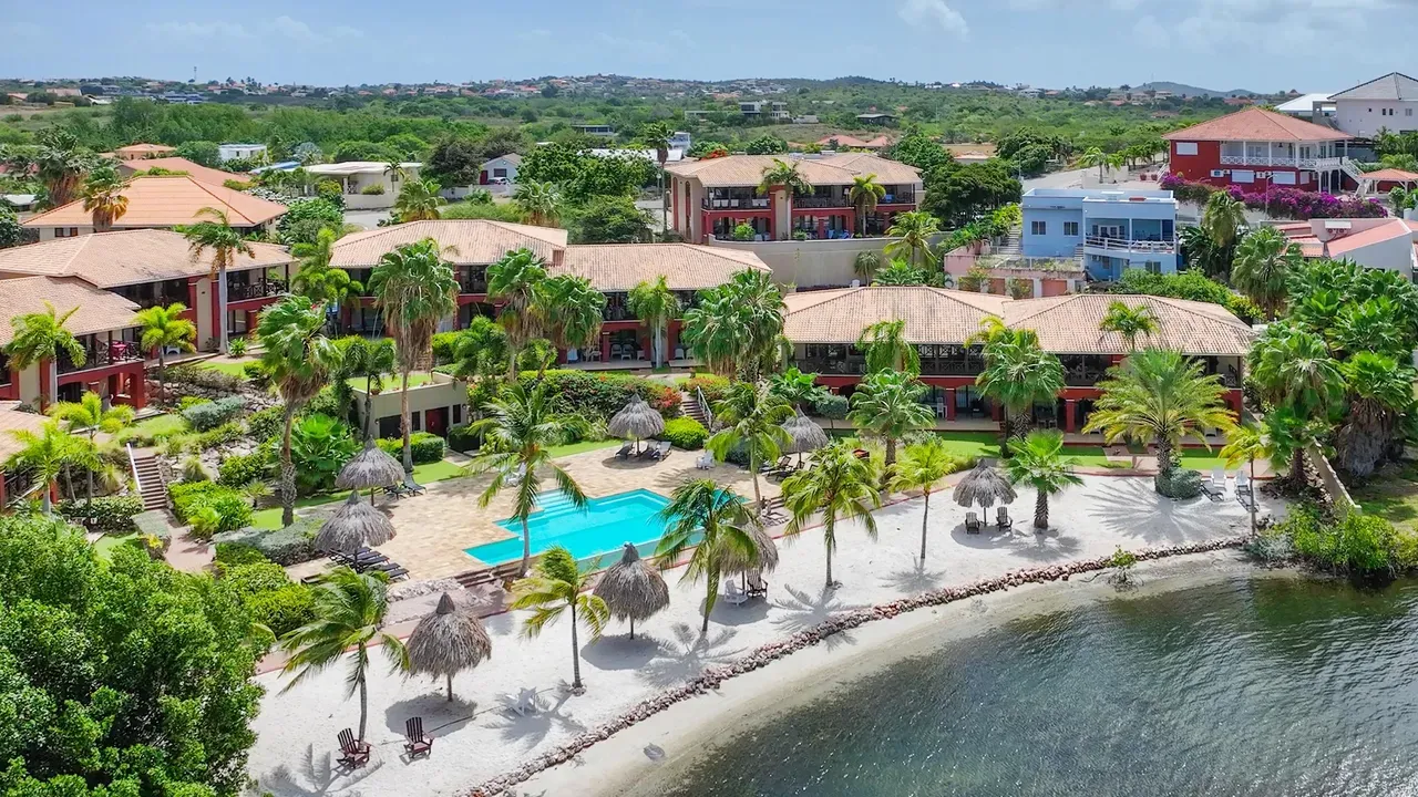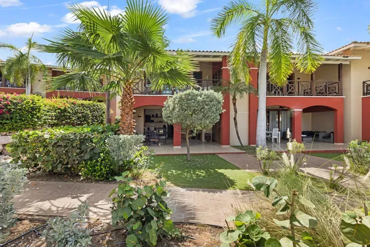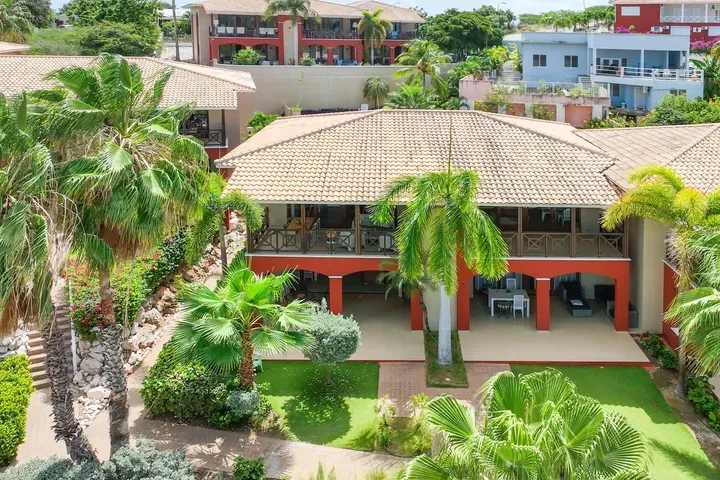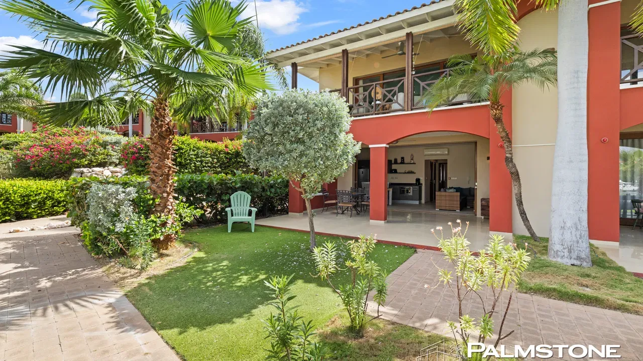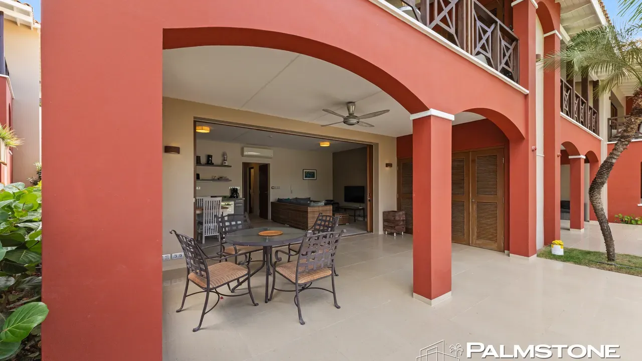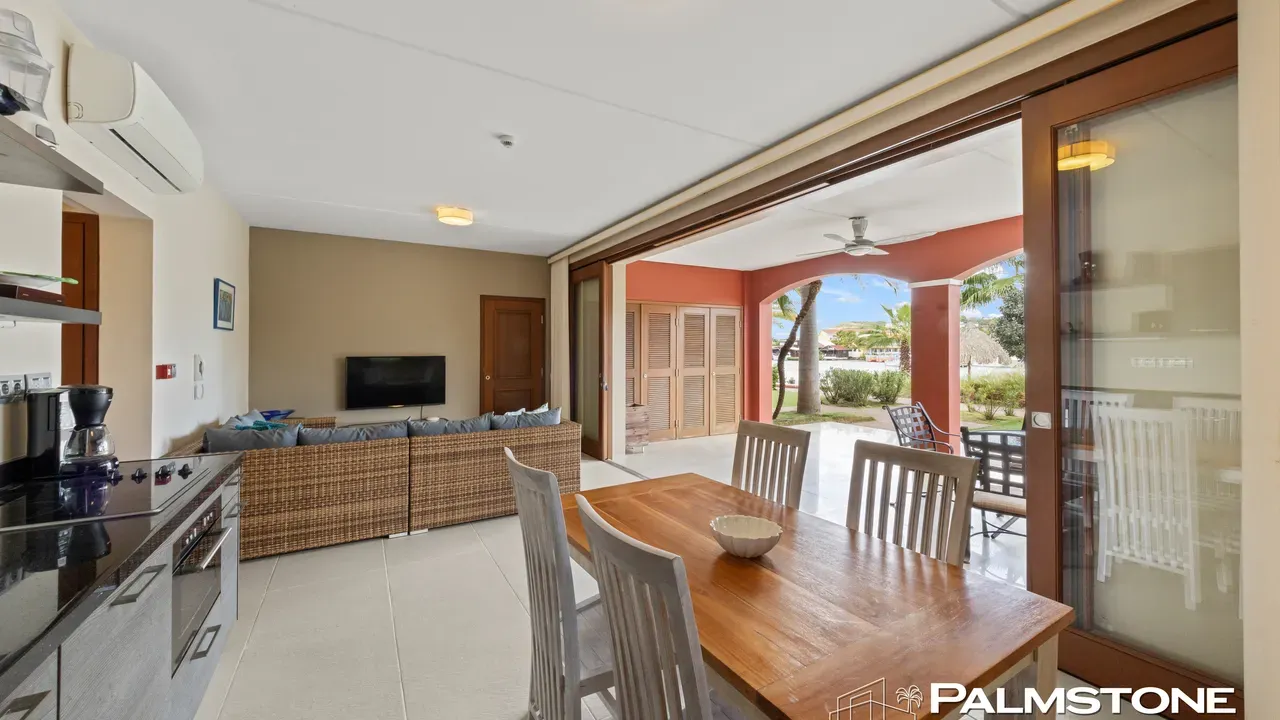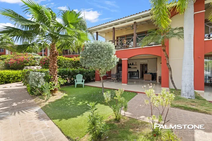 Beautiful Ground Floor Apartment in Secure Beachfront Resort Location Situated in the quiet and sought-after neighborhood of Brakkeput Abou, just a few minutes' drive from Jan Thiel Beach, you’ll find this stunning ground floor apartment located within the secure gates of the Spanish Water View Beach Resort. The resort sits directly on the shores of the Spanish Water and offers a peaceful living environment with high-end amenities. Residents enjoy access to a private beach, a beautifully landscaped swimming pool, and a fully walled complex with 24/7 security and camera surveillance. Private parking is available for residents within the resort. The Apartment This bright and elegant ground floor apartment features a spacious covered terrace that seamlessly connects to the living room through large sliding/pocket doors. From the terrace, you walk directly into a lush tropical garden leading to the private beach, with stunning views of the Spanish Water right in front of you. Thanks to the constant sea breeze, the apartment remains naturally ventilated and pleasantly cool throughout the day. The home is finished to a high standard, with a modern kitchen equipped with a ceramic cooktop, built-in oven, and dishwasher, all integrated into an open-plan layout connected to the comfortable living area. The apartment offers two bedrooms, each with its own private bathroom, a separate guest toilet, and a laundry/storage room. Both bedrooms and the living room are equipped with inverter air conditioning for efficient cooling. All in all, a fantastic home in a prime location, with everything you need just minutes away. We warmly invite you to come and experience this exceptional property with us. — Sold including complete inventory —