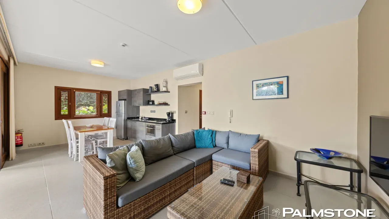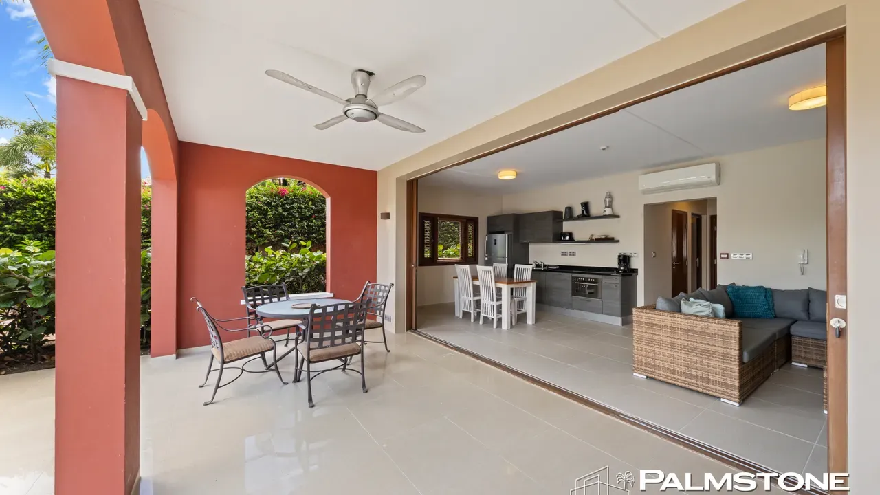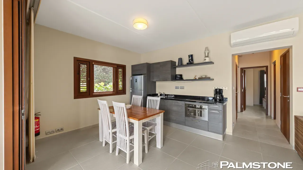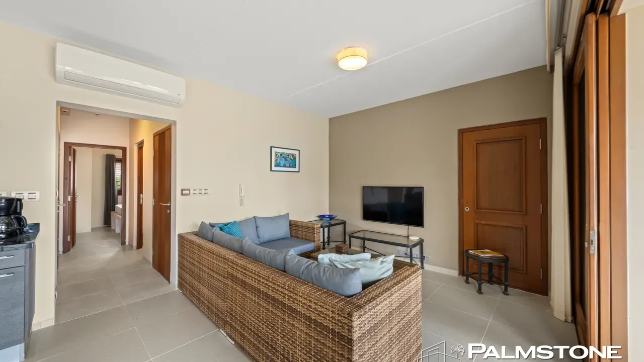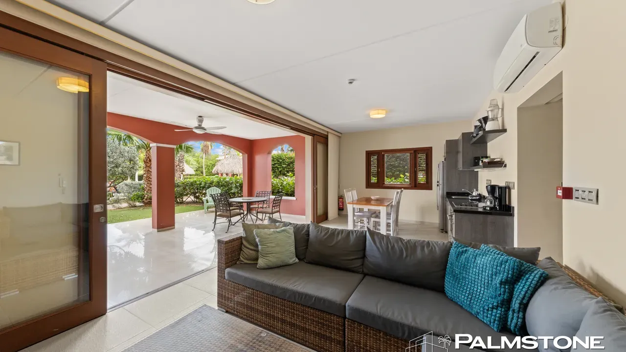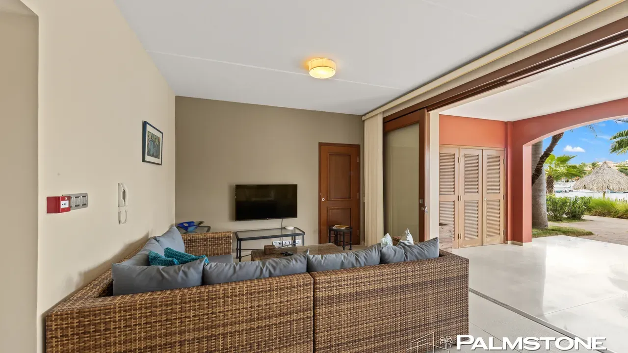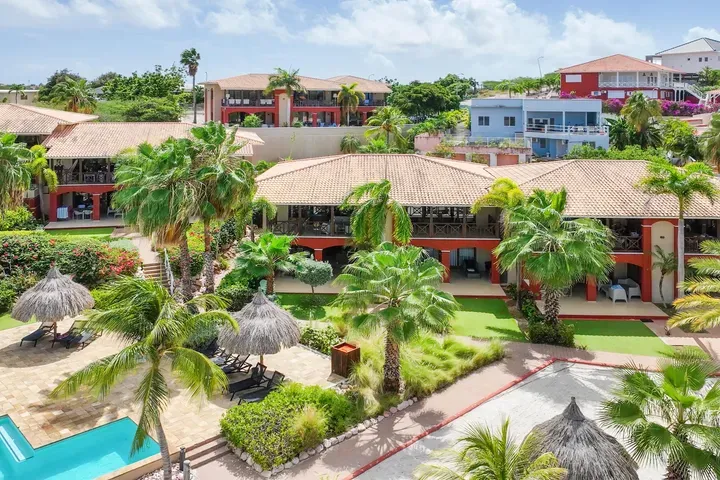Beautiful Ground Floor Apartment in Secure Beachfront Resort Location Situated in the quiet and sought-after neighborhood of Brakkeput Abou, just a few minutes' drive from Jan Thiel Beach, you’ll find this stunning ground floor apartment located within the secure gates of the Spanish Water View Beach Resort. The resort sits directly on the shores of the Spanish Water and offers a peaceful living environment with high-end amenities. Residents enjoy access to a private beach, a beautifully landscaped swimming pool, and a fully walled complex with 24/7 security and camera surveillance. Private parking is available for residents within the resort. The Apartment This bright and elegant ground floor apartment features a spacious covered terrace that seamlessly connects to the living room through large sliding/pocket doors. From the terrace, you walk directly into a lush tropical garden leading to the private beach, with stunning views of the Spanish Water right in front of you. Thanks to the constant sea breeze, the apartment remains naturally ventilated and pleasantly cool throughout the day. The home is finished to a high standard, with a modern kitchen equipped with a ceramic cooktop, built-in oven, and dishwasher, all integrated into an open-plan layout connected to the comfortable living area. The apartment offers two bedrooms, each with its own private bathroom, a separate guest toilet, and a laundry/storage room. Both bedrooms and the living room are equipped with inverter air conditioning for efficient cooling. All in all, a fantastic home in a prime location, with everything you need just minutes away. We warmly invite you to come and experience this exceptional property with us. — Sold including complete inventory —