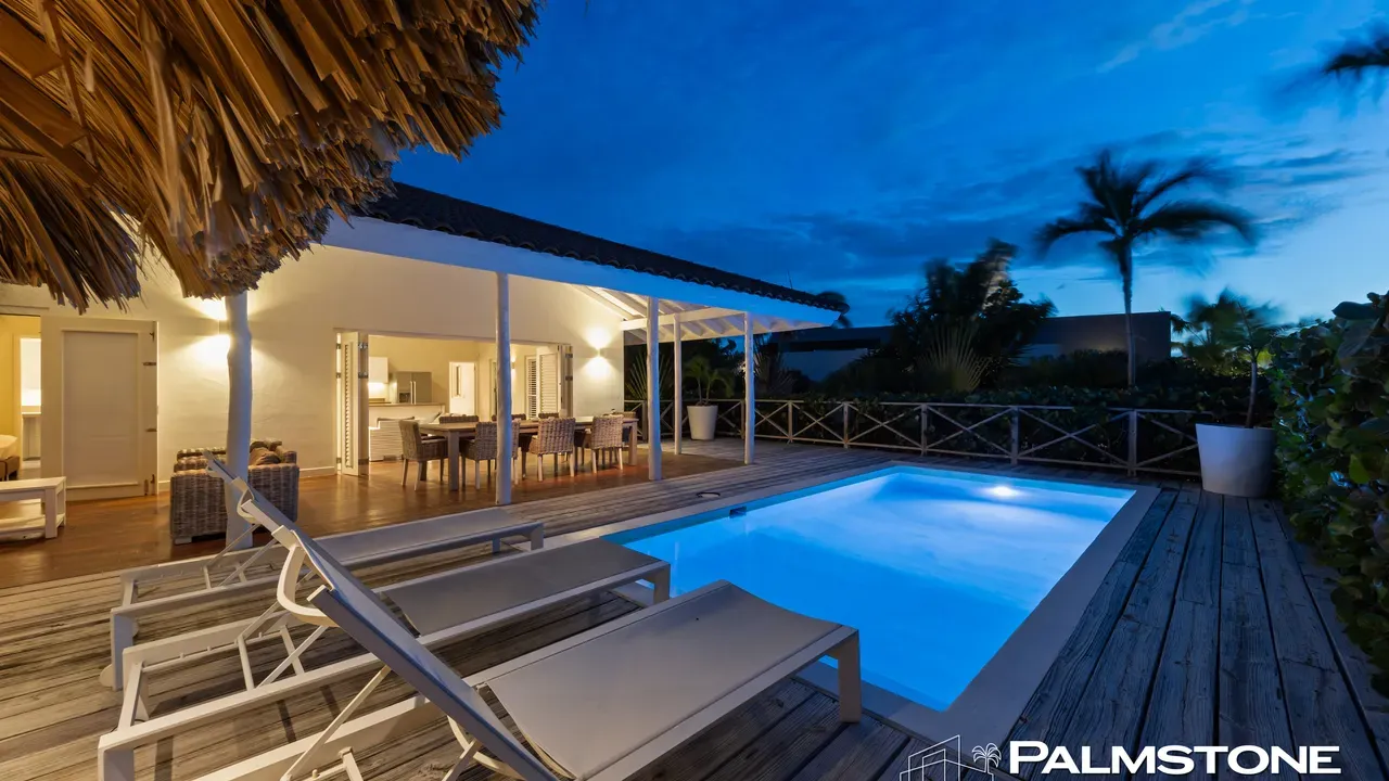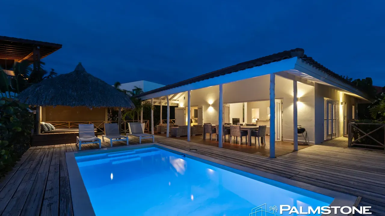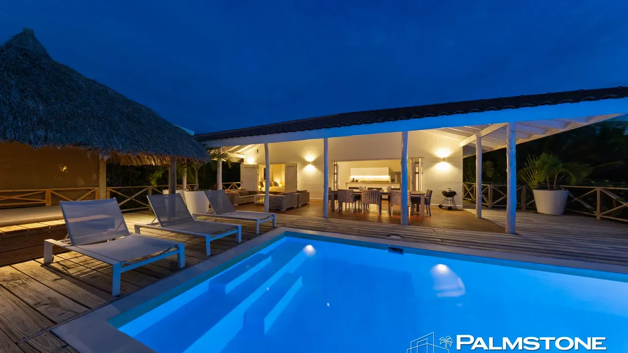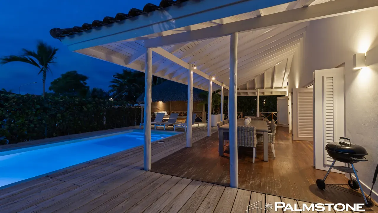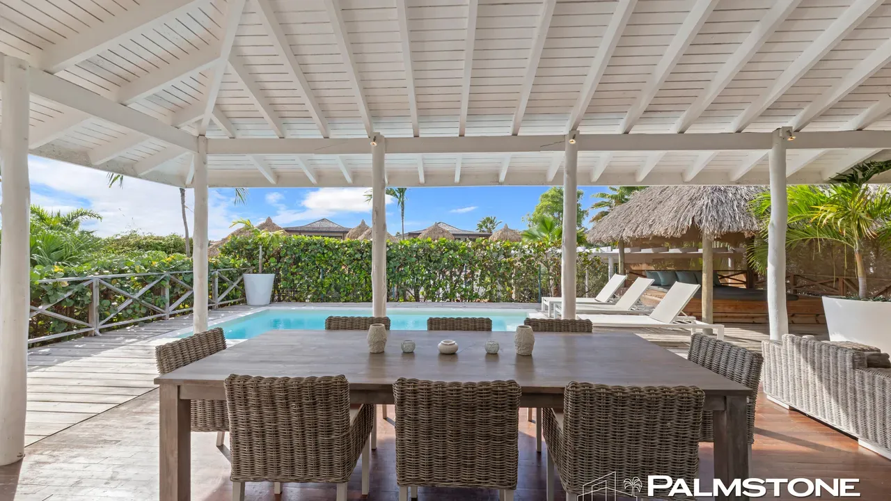 Exclusive Villa in Vista Royal – Jan Thiel 3 Bedrooms | 3 Bathrooms | Private Pool | Palapa | High Tropical Roof | Air Conditioning | Solar Panels Welcome to the pinnacle of tropical living on Curaçao. This exquisite villa, located in the prestigious Vista Royal neighborhood, offers unmatched luxury, space, and privacy — just 500 meters from the vibrant and secure Jan Thiel Beach. The residence features three elegant bedrooms, each with its own stylish en-suite bathroom. The expansive living area is crowned by a soaring tropical ceiling, creating an atmosphere of openness and refined grandeur. Striking accordion doors open completely to the sun-drenched terrace and private pool, surrounded by lush mature landscaping — your personal oasis of peace and sophistication. Beneath the thatched palapa, enjoy the perfect combination of shade, privacy, and views of the beautifully landscaped garden and sparkling pool — ideal for relaxed afternoons or elegant sunset gatherings. Equipped with solar panels, the villa combines luxury with sustainability. All bedrooms are air-conditioned, ensuring year-round indoor comfort, even on the warmest island days. Situated in a prime location, the villa is just a short stroll from Jan Thiel Beach, home to colorful coral reefs, high-end beach clubs, and popular restaurants such as Zanzibar, Zest, Koko’s, Tinto, and Agave. Supermarkets, fitness centers, dive schools, and wellness facilities are also just around the corner. Turn-key, sustainable, and exceptionally located — this is Caribbean living at its finest. Your dream villa is waiting. Come experience it yourself. Schedule a viewing today.