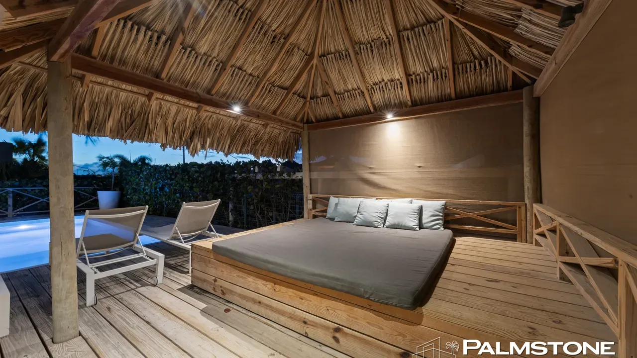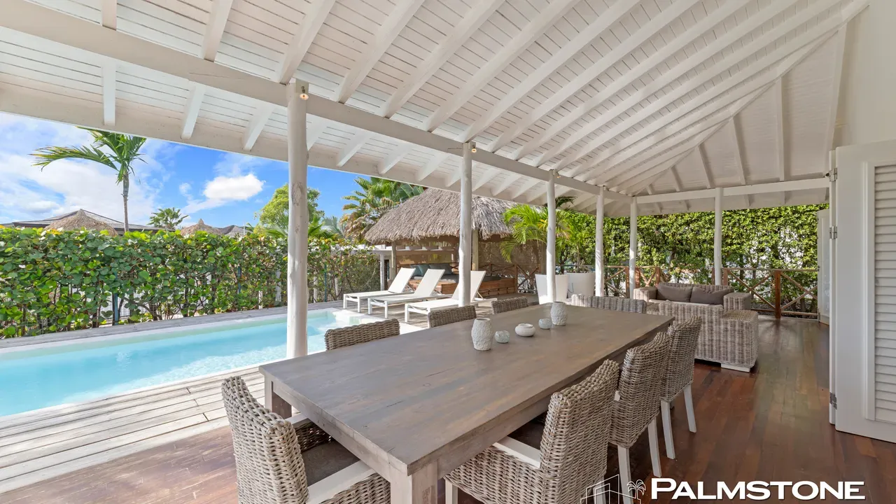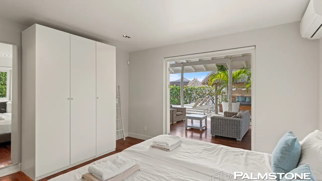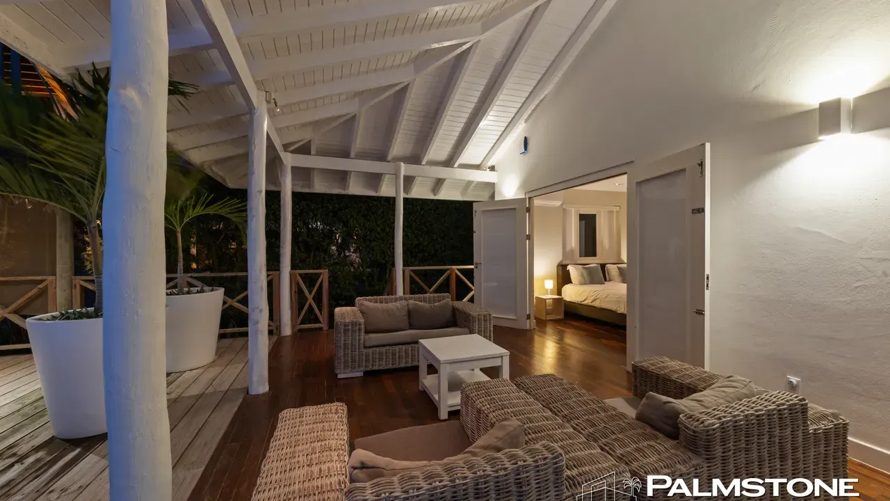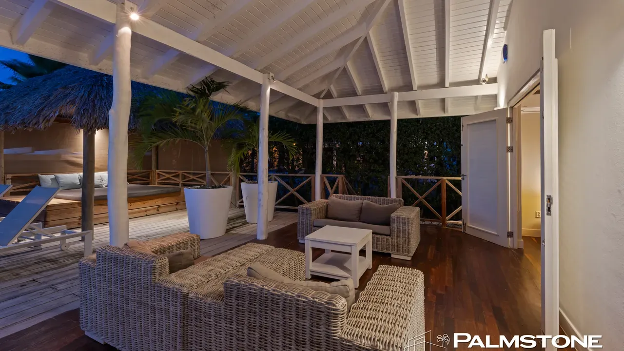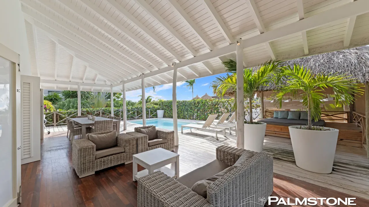 Exclusive Villa in Vista Royal – Jan Thiel 3 Bedrooms | 3 Bathrooms | Private Pool | Palapa | High Tropical Roof | Air Conditioning | Solar Panels Welcome to the pinnacle of tropical living on Curaçao. This exquisite villa, located in the prestigious Vista Royal neighborhood, offers unmatched luxury, space, and privacy — just 500 meters from the vibrant and secure Jan Thiel Beach. The residence features three elegant bedrooms, each with its own stylish en-suite bathroom. The expansive living area is crowned by a soaring tropical ceiling, creating an atmosphere of openness and refined grandeur. Striking accordion doors open completely to the sun-drenched terrace and private pool, surrounded by lush mature landscaping — your personal oasis of peace and sophistication. Beneath the thatched palapa, enjoy the perfect combination of shade, privacy, and views of the beautifully landscaped garden and sparkling pool — ideal for relaxed afternoons or elegant sunset gatherings. Equipped with solar panels, the villa combines luxury with sustainability. All bedrooms are air-conditioned, ensuring year-round indoor comfort, even on the warmest island days. Situated in a prime location, the villa is just a short stroll from Jan Thiel Beach, home to colorful coral reefs, high-end beach clubs, and popular restaurants such as Zanzibar, Zest, Koko’s, Tinto, and Agave. Supermarkets, fitness centers, dive schools, and wellness facilities are also just around the corner. Turn-key, sustainable, and exceptionally located — this is Caribbean living at its finest. Your dream villa is waiting. Come experience it yourself. Schedule a viewing today.