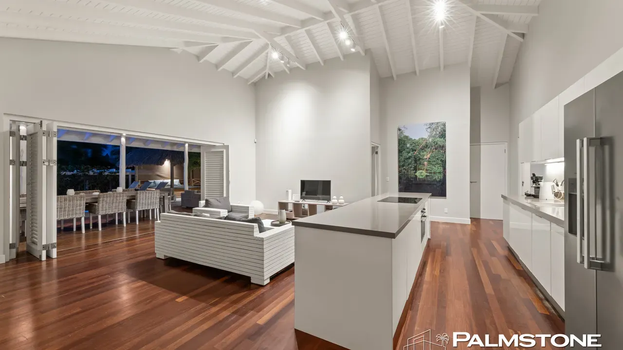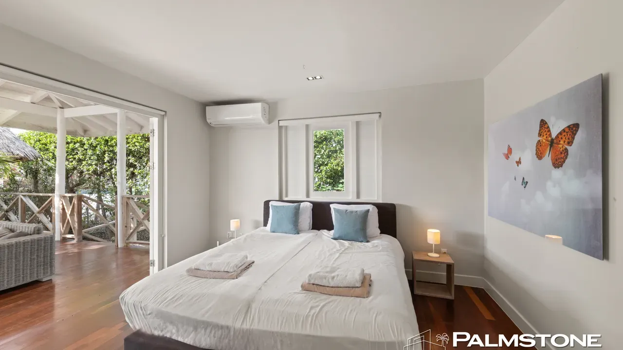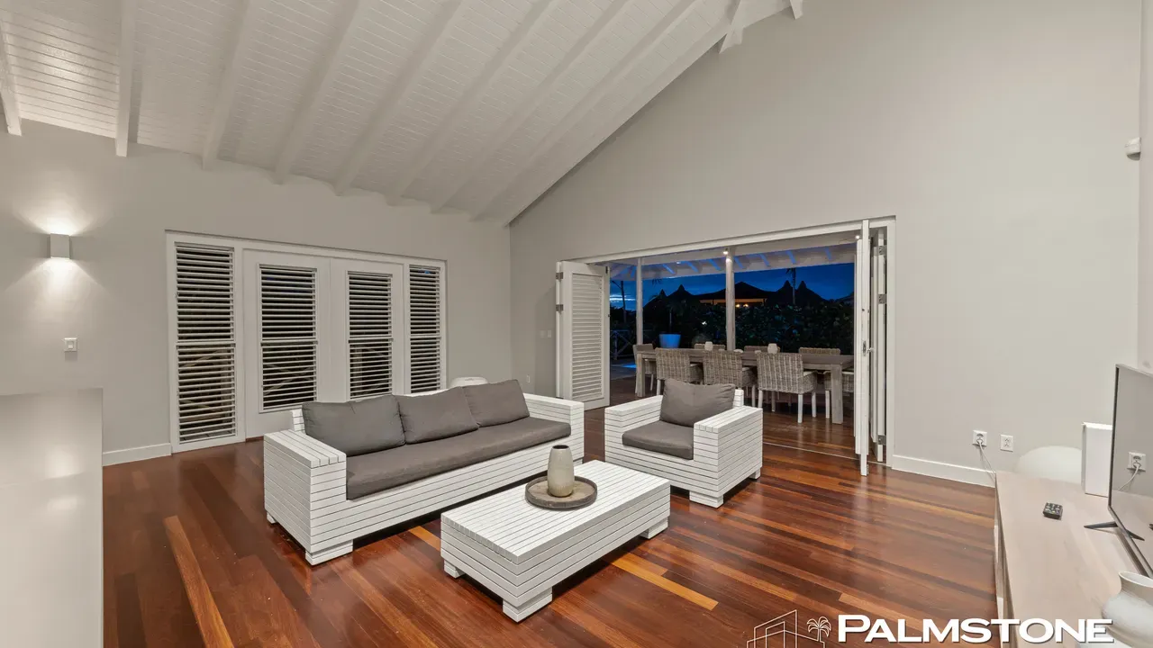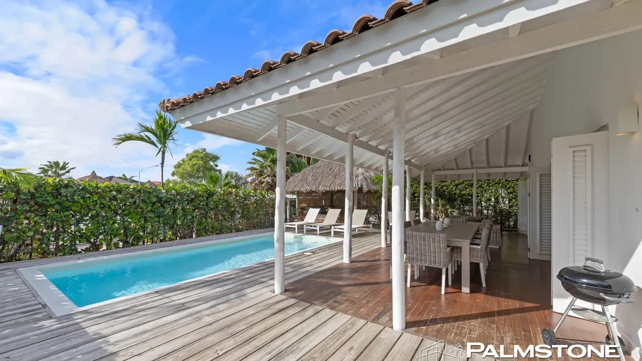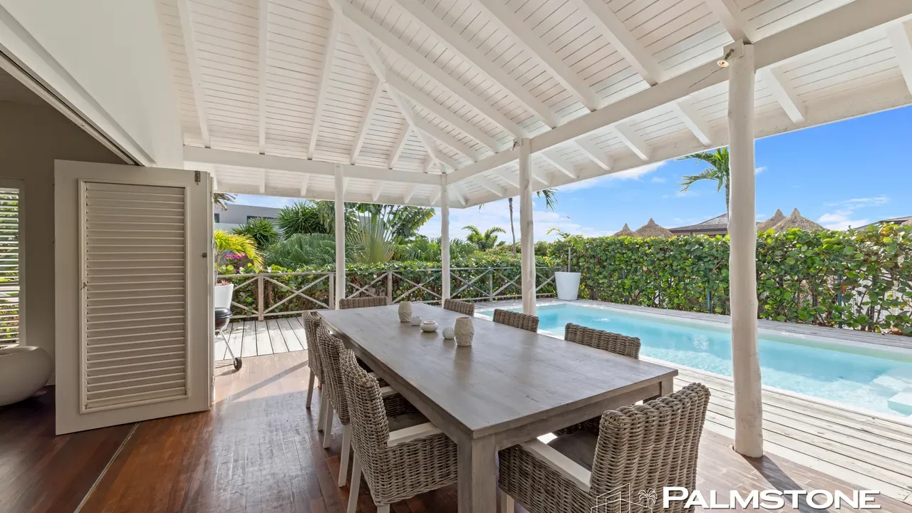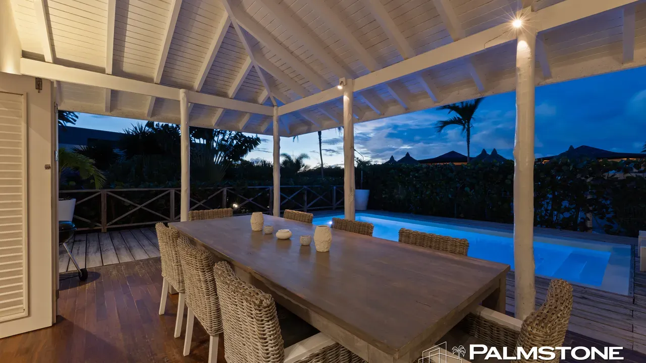 Exclusive Villa in Vista Royal – Jan Thiel 3 Bedrooms | 3 Bathrooms | Private Pool | Palapa | High Tropical Roof | Air Conditioning | Solar Panels Welcome to the pinnacle of tropical living on Curaçao. This exquisite villa, located in the prestigious Vista Royal neighborhood, offers unmatched luxury, space, and privacy — just 500 meters from the vibrant and secure Jan Thiel Beach. The residence features three elegant bedrooms, each with its own stylish en-suite bathroom. The expansive living area is crowned by a soaring tropical ceiling, creating an atmosphere of openness and refined grandeur. Striking accordion doors open completely to the sun-drenched terrace and private pool, surrounded by lush mature landscaping — your personal oasis of peace and sophistication. Beneath the thatched palapa, enjoy the perfect combination of shade, privacy, and views of the beautifully landscaped garden and sparkling pool — ideal for relaxed afternoons or elegant sunset gatherings. Equipped with solar panels, the villa combines luxury with sustainability. All bedrooms are air-conditioned, ensuring year-round indoor comfort, even on the warmest island days. Situated in a prime location, the villa is just a short stroll from Jan Thiel Beach, home to colorful coral reefs, high-end beach clubs, and popular restaurants such as Zanzibar, Zest, Koko’s, Tinto, and Agave. Supermarkets, fitness centers, dive schools, and wellness facilities are also just around the corner. Turn-key, sustainable, and exceptionally located — this is Caribbean living at its finest. Your dream villa is waiting. Come experience it yourself. Schedule a viewing today.