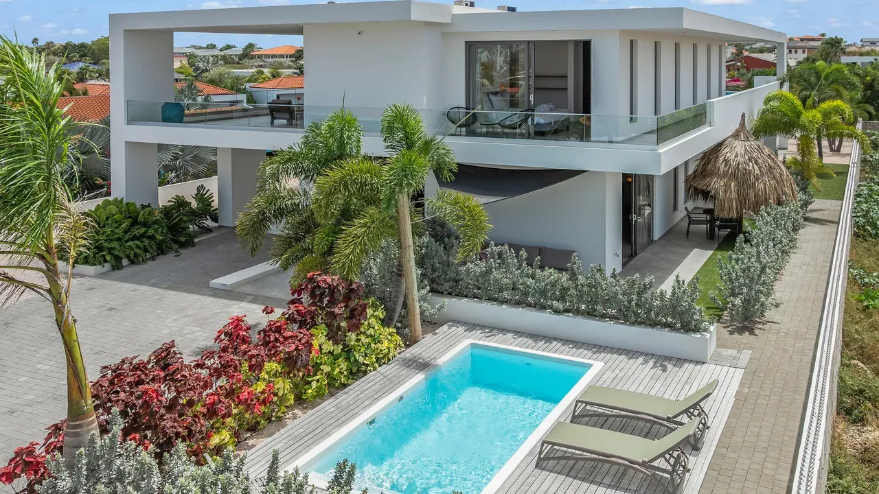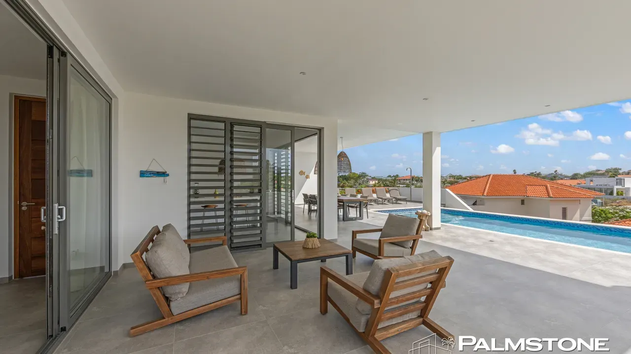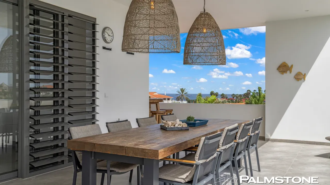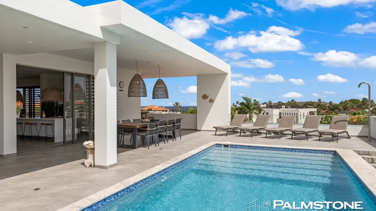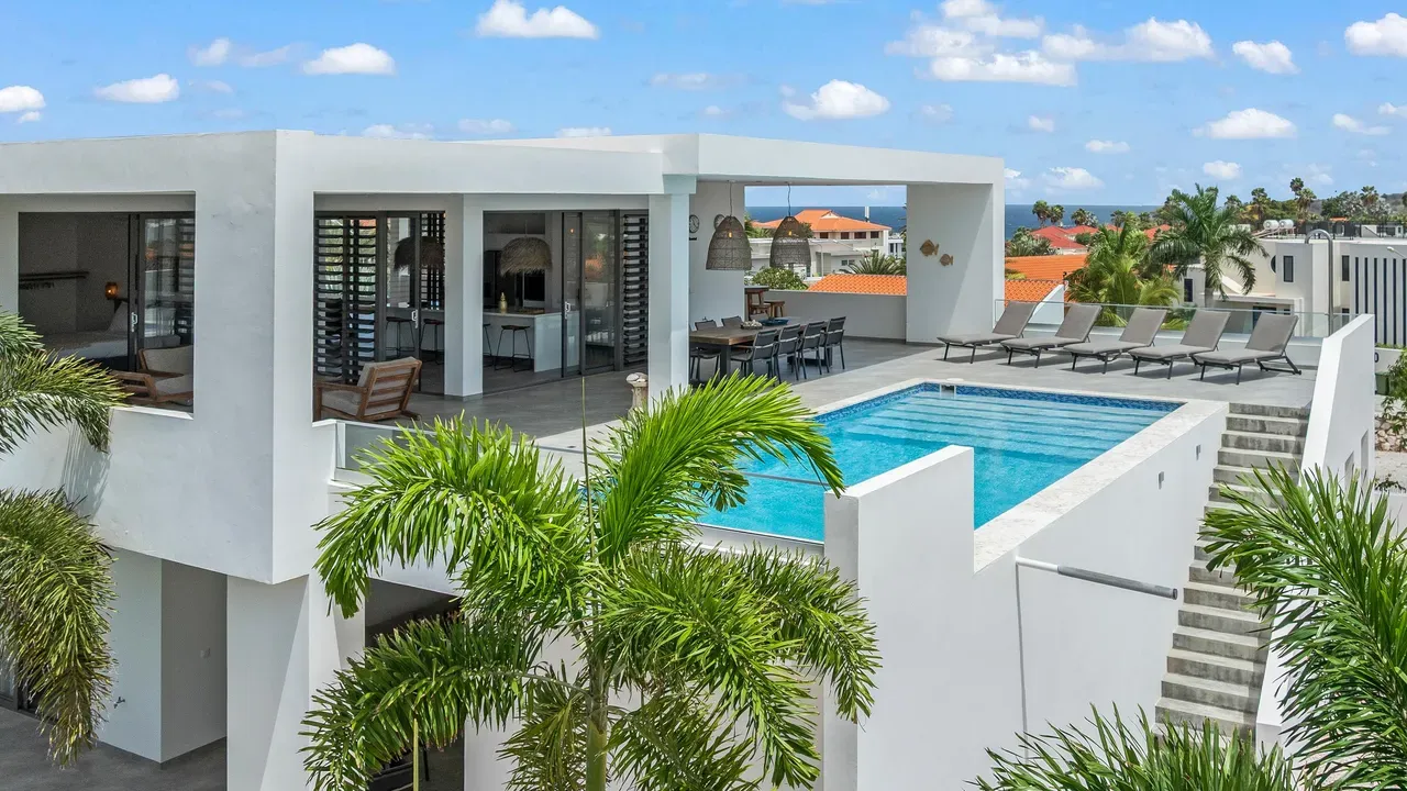 Vista Royal | Stylish Villa with Ocean Views and Two Luxury Apartments – Just a 3-Minute Walk from Jan Thiel Beach Nestled in one of Curaçao’s most coveted locations, just a short stroll from the vibrant Jan Thiel Beach and its array of amenities, lies this exclusive 2024 villa – a rare opportunity in the high-end segment where luxury, comfort, and return on investment blend effortlessly. Generously designed and finished to perfection with high-quality, sustainable materials, the villa exudes sophistication and craftsmanship. Expansive windows, lofty ceilings, and a seamless flow between indoor and outdoor spaces create an atmosphere of light, openness, and tranquility, while the ever-present island breeze provides natural cooling throughout the home. A graceful wraparound porch on the upper floor invites you to walk along the perimeter of the house, offering different perspectives throughout the day – from the soft light of morning to the golden glow of the setting sun over the sea. At the rear of the property, a charming shaded terrace with a swimming pool awaits – perfectly positioned to catch the breeze and enjoy breathtaking sunrises over the hills of Vista Royal. At the front, sweeping ocean views unfold, where the sun dips below the horizon in a blaze of fire and gold – a spectacle that never ceases to captivate. On the ground floor, two fully independent apartments each feature a private entrance and pool. These luxurious residences are designed with the same attention to detail and style as the main villa and present a superb opportunity for short- or long-term rental. The potential rental income is substantial, making for an exceptionally comfortable and nearly cost-free living experience. The property also offers ample on-site parking, including covered spaces, suitable for multiple vehicles, boats, and jet skis – ensuring your prized possessions are always safely stored and protected from the sun. Peacefully located in a secure and well-maintained neighborhood, yet within walking distance of beaches, restaurants, shops, and sports facilities, this villa offers a rare balance of privacy, luxury, and lifestyle. A truly exceptional place where living, investing, and enjoying life converge – with views of the sea, the sun, and a worry-free future. Experience it for yourself. Schedule a viewing today.