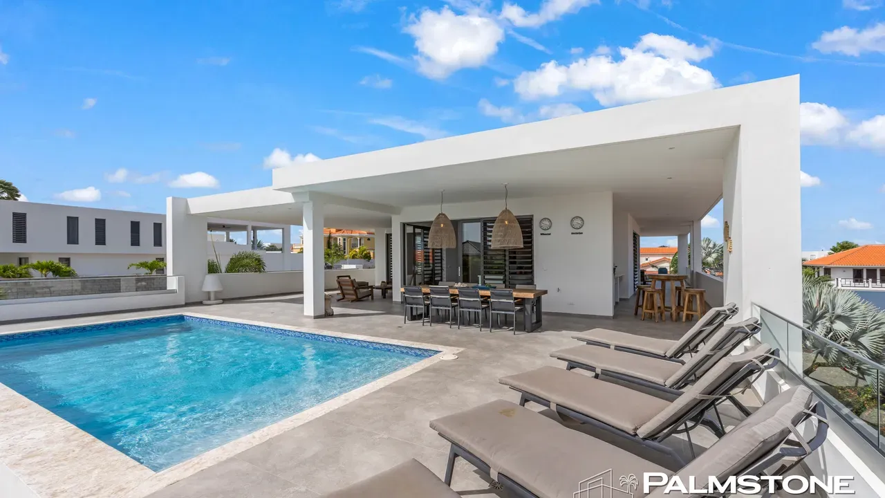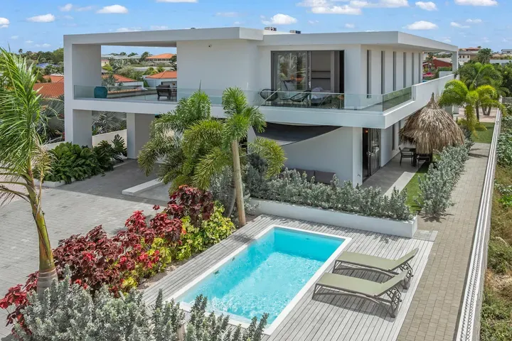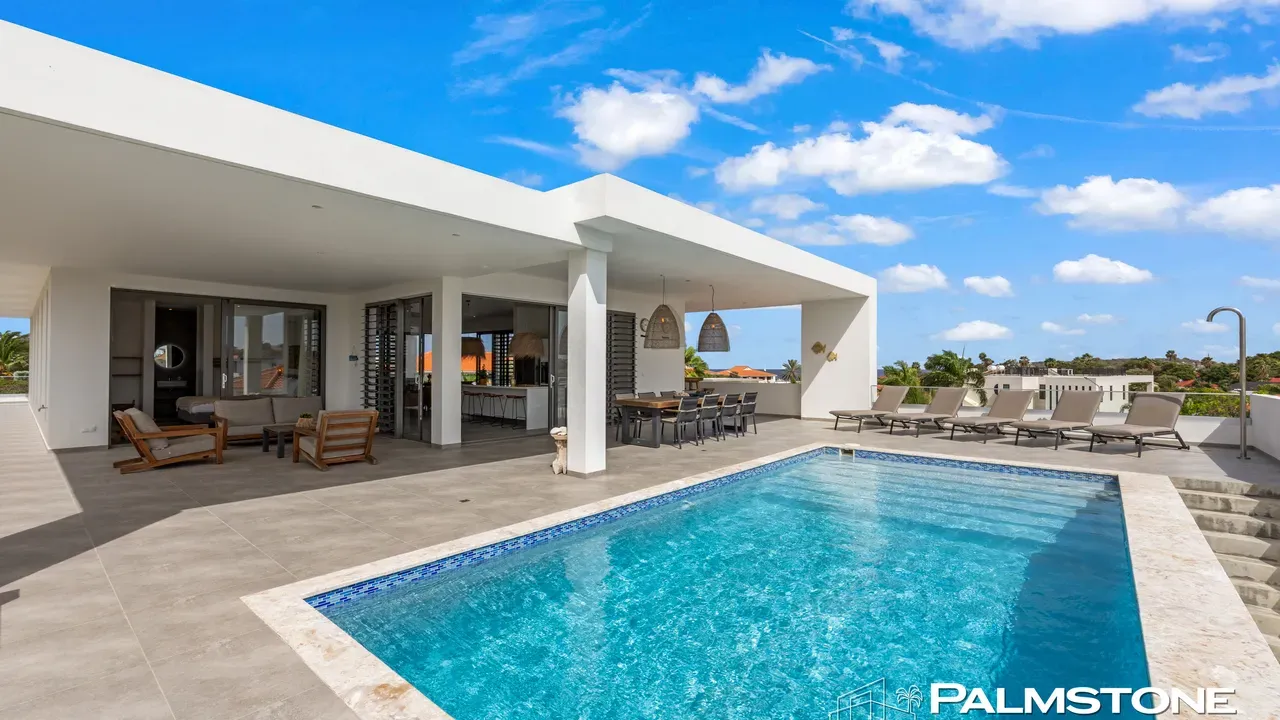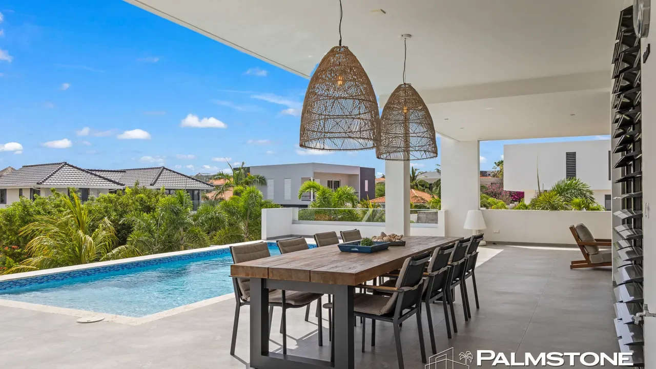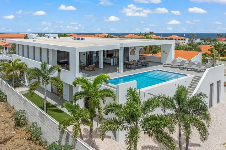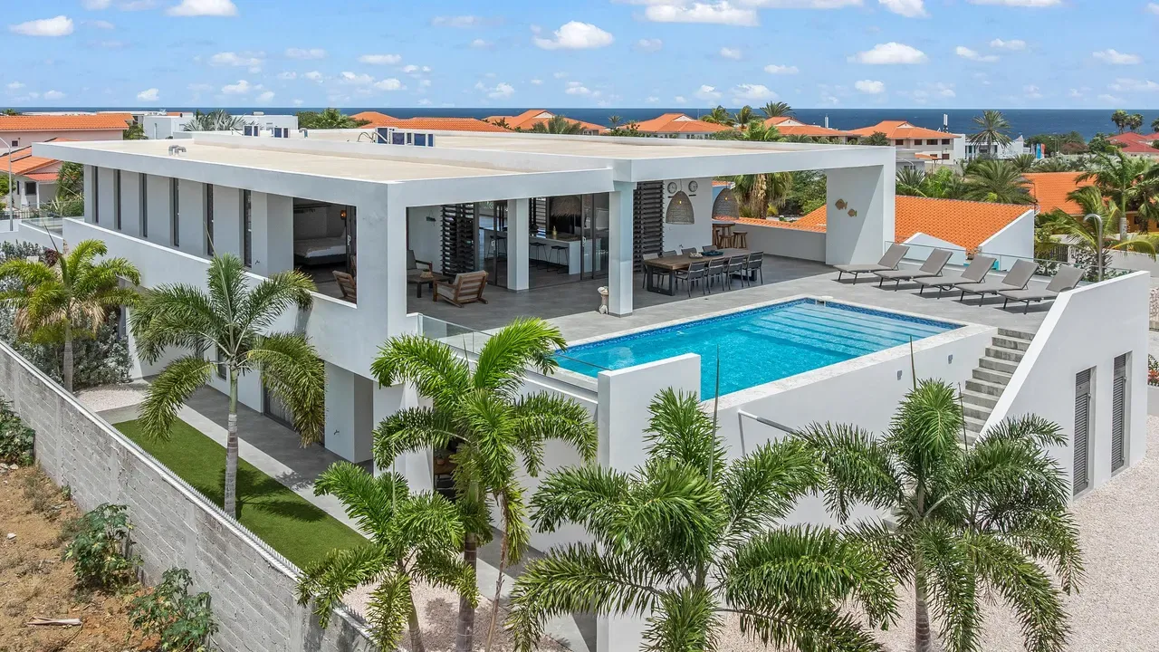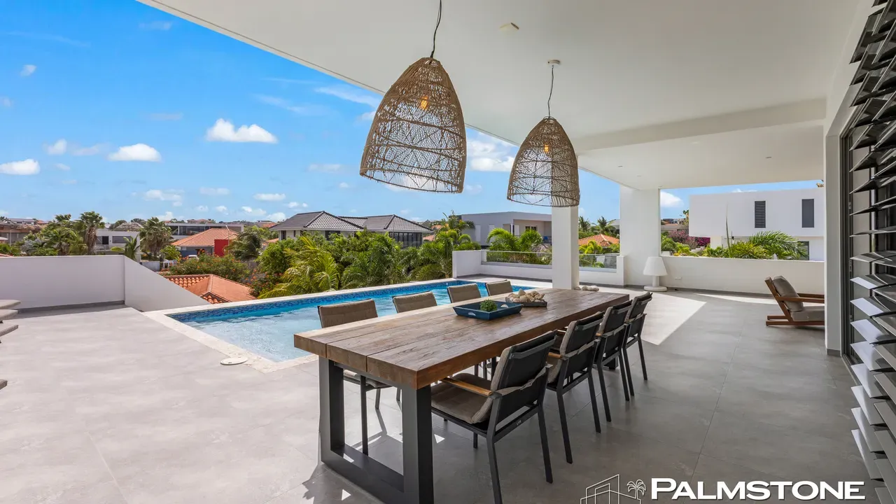Vista Royal | Stylish Villa with Ocean Views and Two Luxury Apartments – Just a 3-Minute Walk from Jan Thiel Beach Nestled in one of Curaçao’s most coveted locations, just a short stroll from the vibrant Jan Thiel Beach and its array of amenities, lies this exclusive 2024 villa – a rare opportunity in the high-end segment where luxury, comfort, and return on investment blend effortlessly. Generously designed and finished to perfection with high-quality, sustainable materials, the villa exudes sophistication and craftsmanship. Expansive windows, lofty ceilings, and a seamless flow between indoor and outdoor spaces create an atmosphere of light, openness, and tranquility, while the ever-present island breeze provides natural cooling throughout the home. A graceful wraparound porch on the upper floor invites you to walk along the perimeter of the house, offering different perspectives throughout the day – from the soft light of morning to the golden glow of the setting sun over the sea. At the rear of the property, a charming shaded terrace with a swimming pool awaits – perfectly positioned to catch the breeze and enjoy breathtaking sunrises over the hills of Vista Royal. At the front, sweeping ocean views unfold, where the sun dips below the horizon in a blaze of fire and gold – a spectacle that never ceases to captivate. On the ground floor, two fully independent apartments each feature a private entrance and pool. These luxurious residences are designed with the same attention to detail and style as the main villa and present a superb opportunity for short- or long-term rental. The potential rental income is substantial, making for an exceptionally comfortable and nearly cost-free living experience. The property also offers ample on-site parking, including covered spaces, suitable for multiple vehicles, boats, and jet skis – ensuring your prized possessions are always safely stored and protected from the sun. Peacefully located in a secure and well-maintained neighborhood, yet within walking distance of beaches, restaurants, shops, and sports facilities, this villa offers a rare balance of privacy, luxury, and lifestyle. A truly exceptional place where living, investing, and enjoying life converge – with views of the sea, the sun, and a worry-free future. Experience it for yourself. Schedule a viewing today.