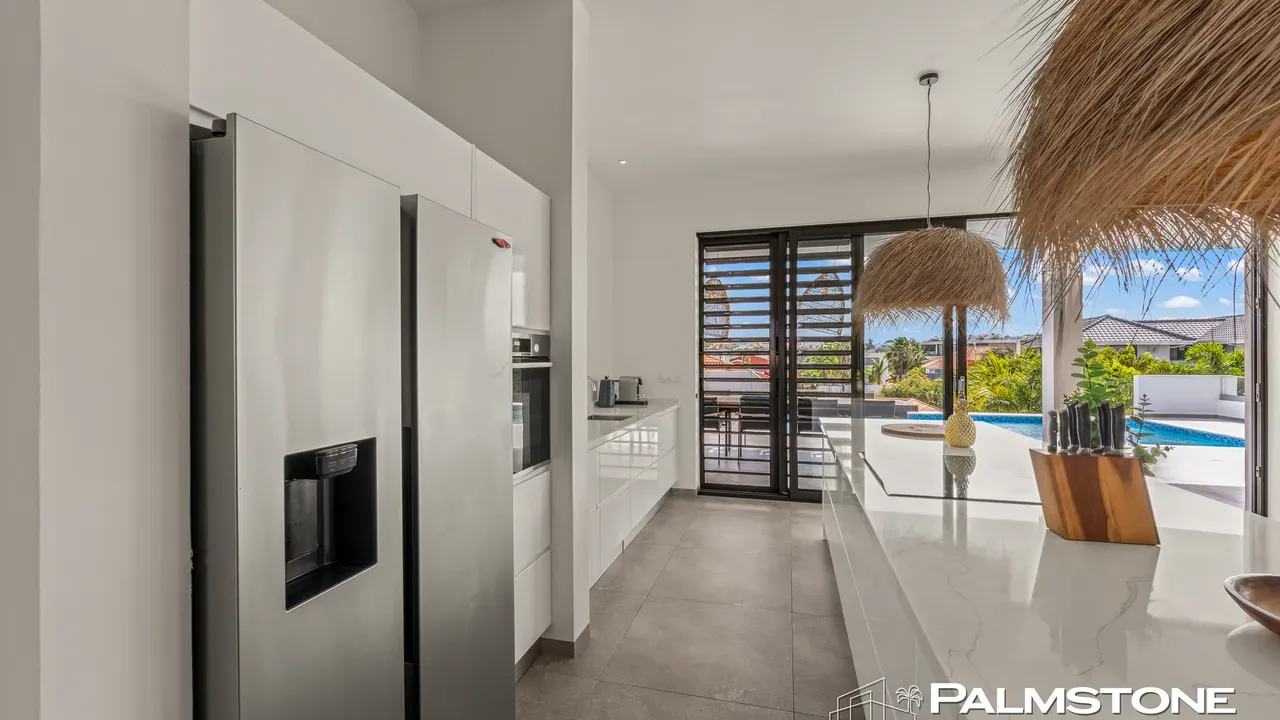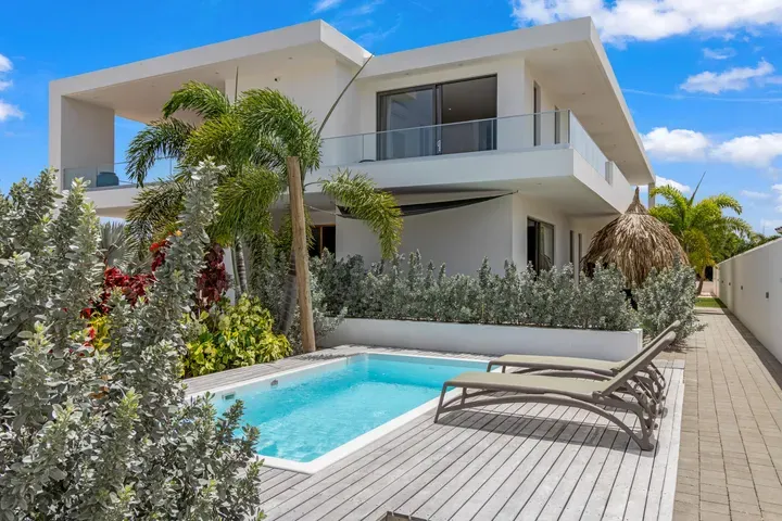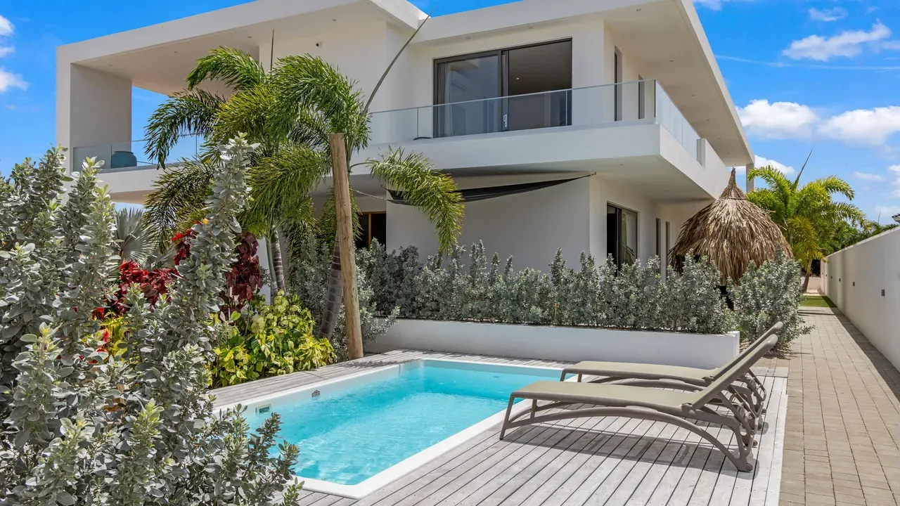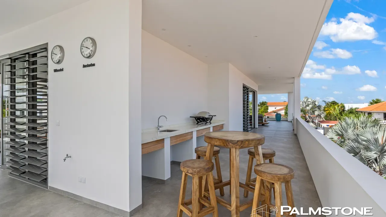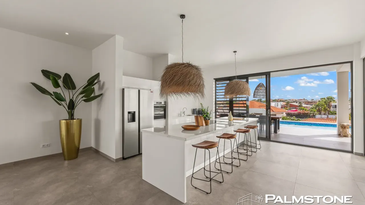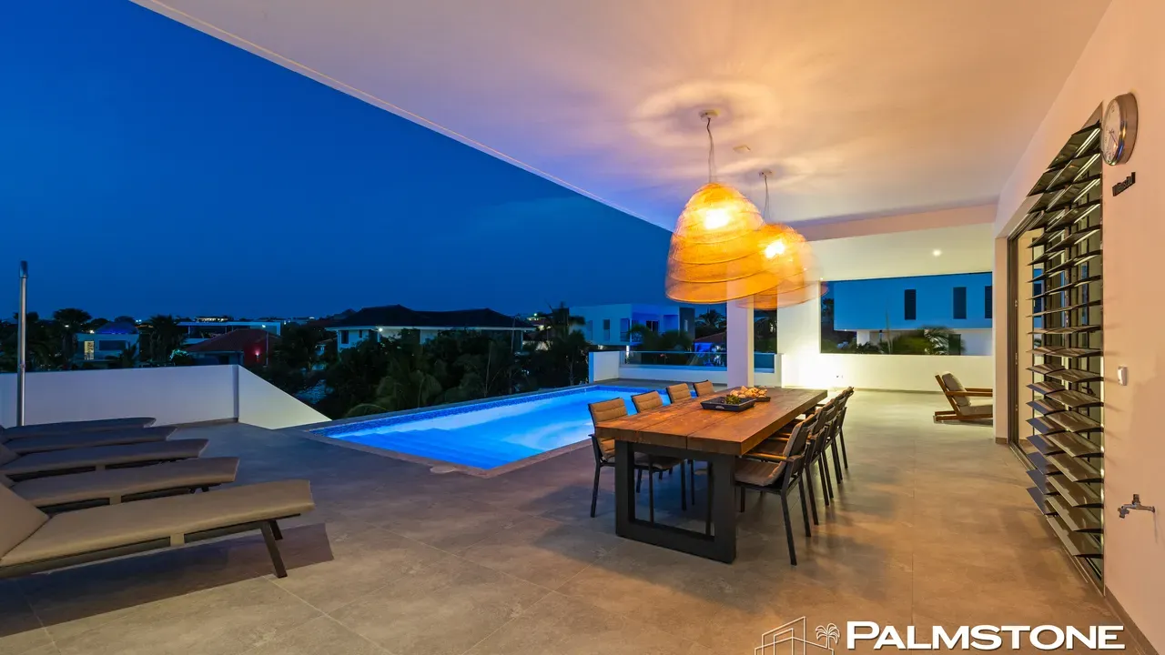 Vista Royal | Stylish Villa with Ocean Views and Two Luxury Apartments – Just a 3-Minute Walk from Jan Thiel Beach Nestled in one of Curaçao’s most coveted locations, just a short stroll from the vibrant Jan Thiel Beach and its array of amenities, lies this exclusive 2024 villa – a rare opportunity in the high-end segment where luxury, comfort, and return on investment blend effortlessly. Generously designed and finished to perfection with high-quality, sustainable materials, the villa exudes sophistication and craftsmanship. Expansive windows, lofty ceilings, and a seamless flow between indoor and outdoor spaces create an atmosphere of light, openness, and tranquility, while the ever-present island breeze provides natural cooling throughout the home. A graceful wraparound porch on the upper floor invites you to walk along the perimeter of the house, offering different perspectives throughout the day – from the soft light of morning to the golden glow of the setting sun over the sea. At the rear of the property, a charming shaded terrace with a swimming pool awaits – perfectly positioned to catch the breeze and enjoy breathtaking sunrises over the hills of Vista Royal. At the front, sweeping ocean views unfold, where the sun dips below the horizon in a blaze of fire and gold – a spectacle that never ceases to captivate. On the ground floor, two fully independent apartments each feature a private entrance and pool. These luxurious residences are designed with the same attention to detail and style as the main villa and present a superb opportunity for short- or long-term rental. The potential rental income is substantial, making for an exceptionally comfortable and nearly cost-free living experience. The property also offers ample on-site parking, including covered spaces, suitable for multiple vehicles, boats, and jet skis – ensuring your prized possessions are always safely stored and protected from the sun. Peacefully located in a secure and well-maintained neighborhood, yet within walking distance of beaches, restaurants, shops, and sports facilities, this villa offers a rare balance of privacy, luxury, and lifestyle. A truly exceptional place where living, investing, and enjoying life converge – with views of the sea, the sun, and a worry-free future. Experience it for yourself. Schedule a viewing today.