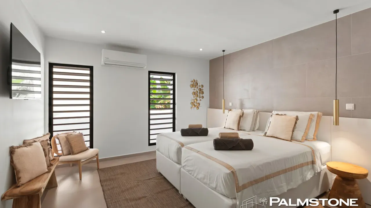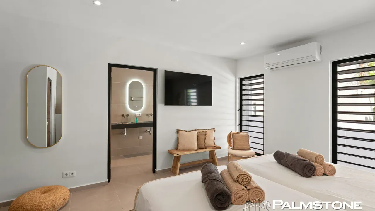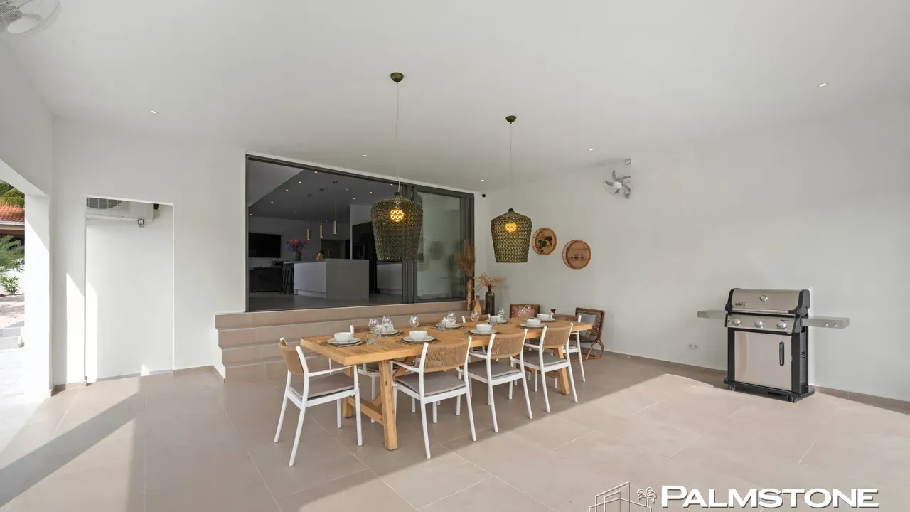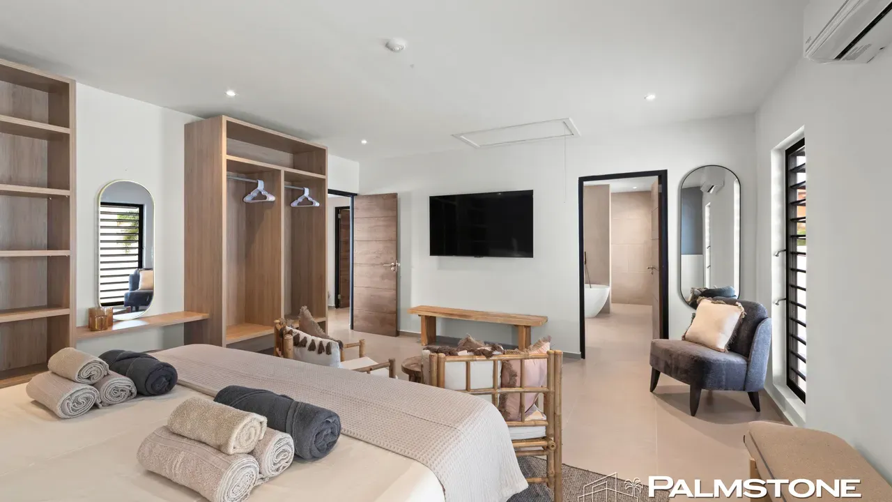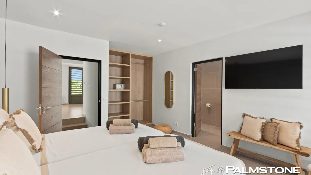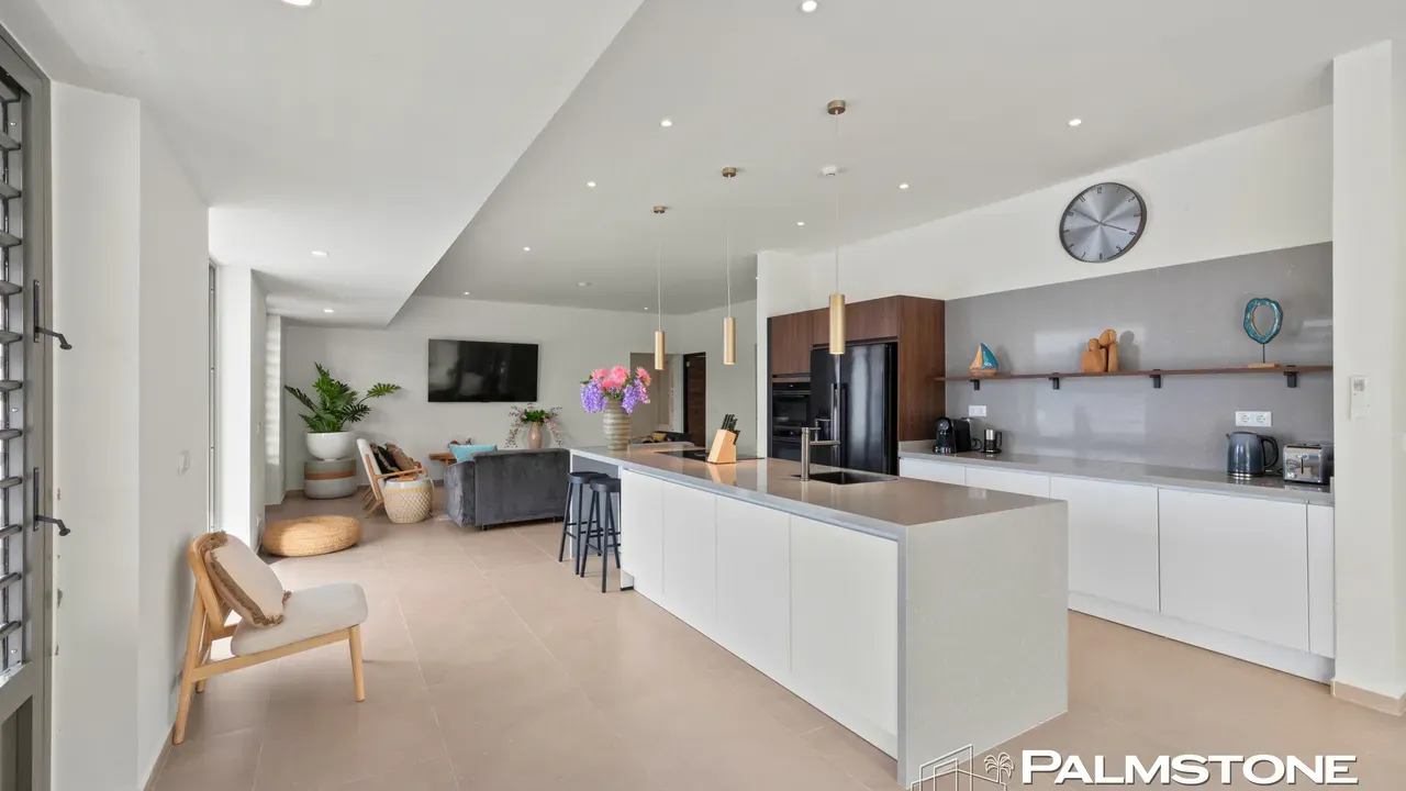 Elegance and Exclusivity Within Walking Distance of Jan Thiel Beach Nestled in a prime location, just a short stroll from the world-renowned Jan Thiel Beach in the sought-after Vista Royal district, we proudly present this fully renovated, single-level villa. This architectural masterpiece, meticulously transformed in 2024, is situated on a generously sized corner lot and exudes luxury, comfort, and sophistication. The villa features four spacious and elegantly designed bedrooms, each with its own en-suite bathroom, offering the ambiance of a high-end boutique hotel. The master suite serves as a true sanctuary, boasting a spa-inspired bathroom with a freestanding bathtub, an expansive walk-in shower, and carefully curated premium finishes. The living area radiates unmatched allure, highlighted by impressive floor-to-ceiling glass sliding doors that seamlessly connect the indoors with the lavish outdoor terrace. The expansive chef’s kitchen is both a visual and functional delight, equipped with a central cooking and prep island with a bar section, built-in state-of-the-art appliances, and sleek, modern finishes. A separate laundry room and an elegantly designed guest toilet complete the interior. The exterior is nothing short of a private paradise, featuring a generously sized swimming pool flanked by two palapa lounges, a cozy sunken seating area with lounge sofas, and a beautifully landscaped garden. The property is fully enclosed with a stylish boundary wall and an electric entry gate, offering ample parking space for multiple vehicles. For your peace of mind, the villa is equipped with a cutting-edge alarm system and camera surveillance. This exceptional property offers an unparalleled blend of luxury, comfort of living and top-tier craftsmanship in a prime location. We warmly invite you to experience this exclusive villa in person. Contact us today to schedule a private viewing and allow yourself to be captivated by this oasis of refinement and comfort.