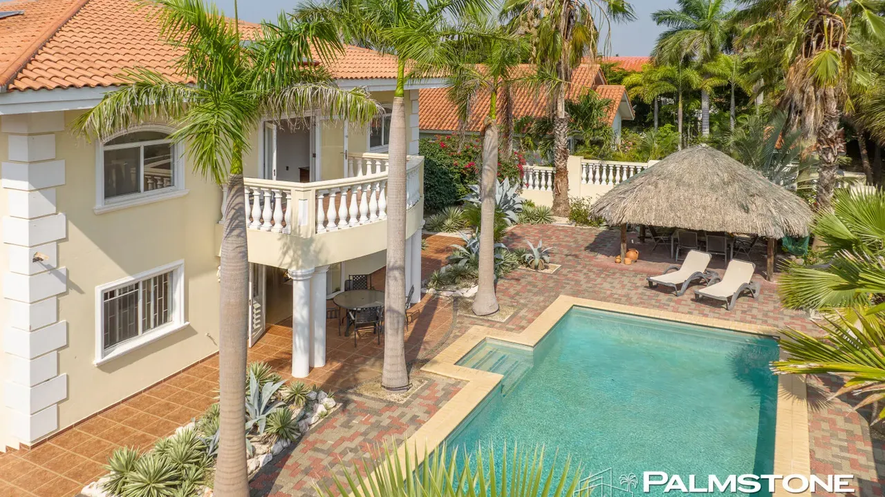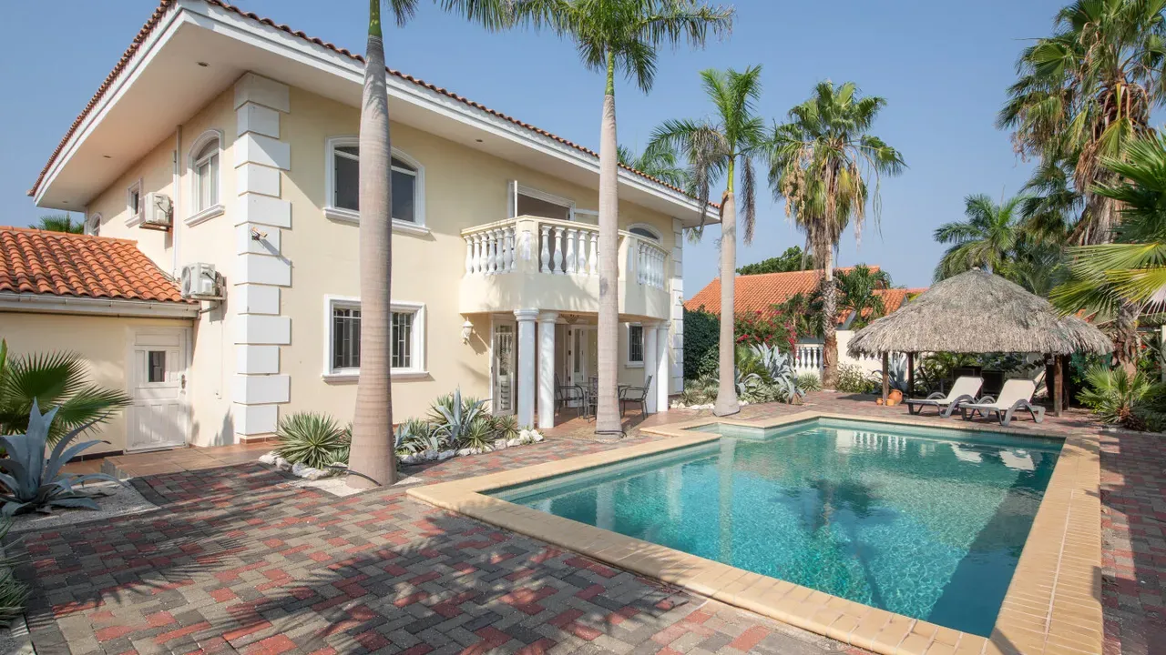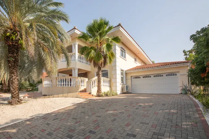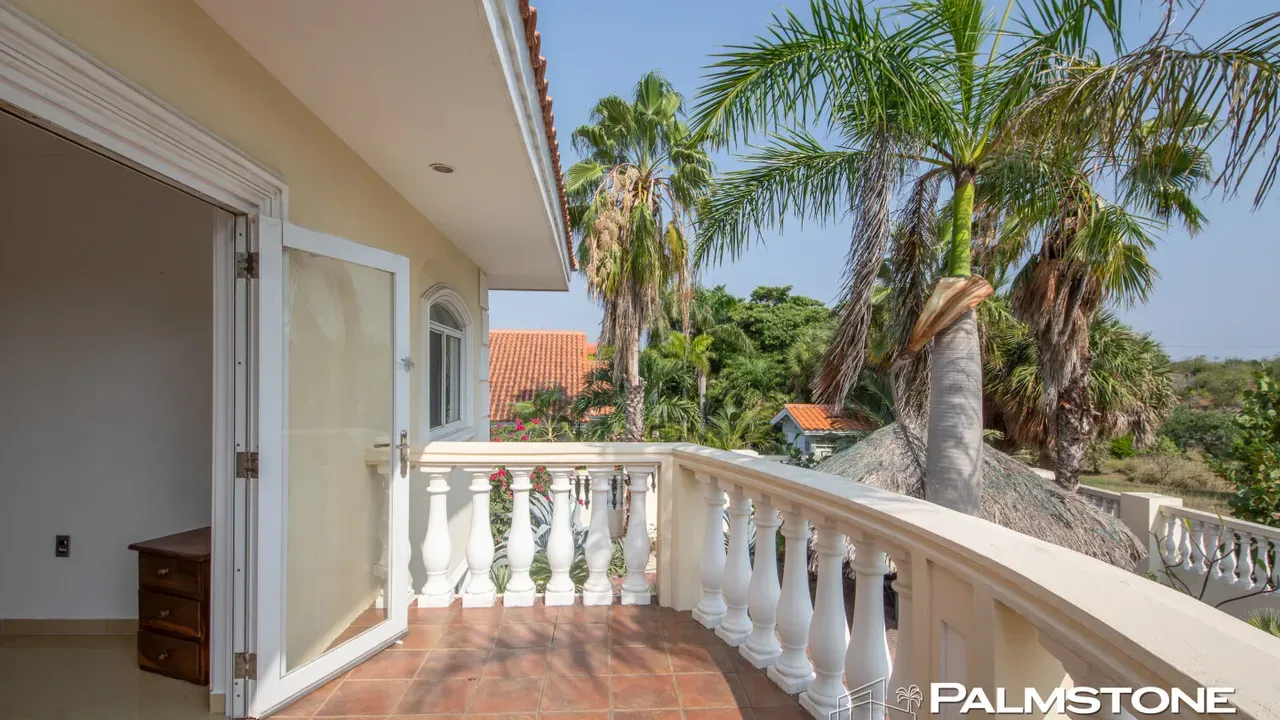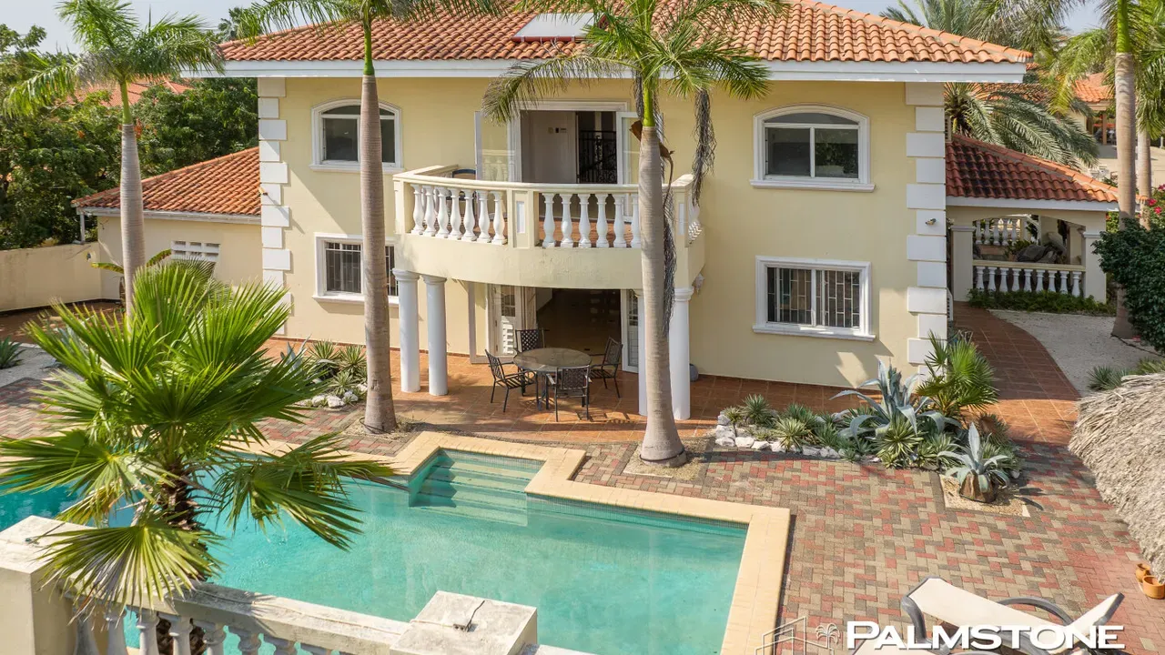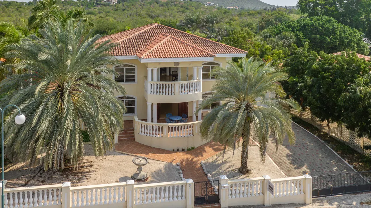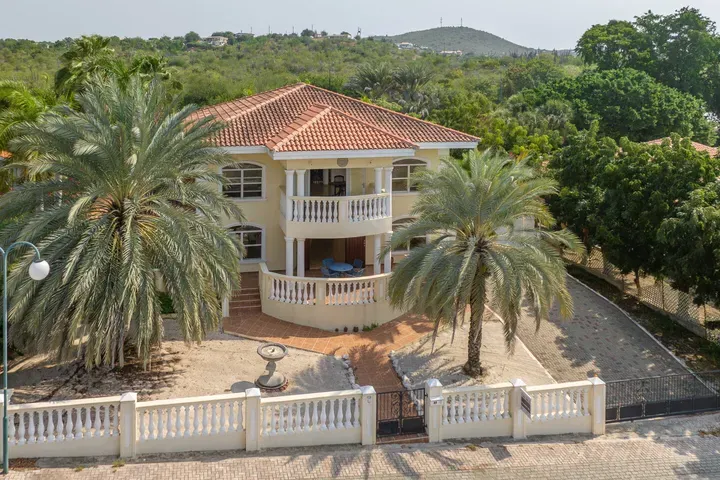 Introducing a remarkable property at villapark Zuurzak, Curacao’s exclusive gated and secured community at the east side of the island, centrally located between Jan Thiel Beach and Mambo Beach from which you have direct access to the beautiful nature reserve "the salt pans". The front driveway, accented with elegant brick trim exudes sophistication, complemented by a spacious 2-car garage and electric gate. The massive, double oak front doors of this elegant home welcomes you to the perfect blend of inside and outside flow and open space design. This home boasts 5 bedrooms and 4 bathrooms, offering exceptional features that define luxury living. Inside, a grand foyer welcomes you with opulent sweeping staircase. The living room features an open floor plan with a woodwork finished cabinets kitchen which creates an airy ambiance, flowing into multiple outside lounge areas. The living room boasts fold-away doors to the backyard, merging indoor and outdoor living. Two guest bedrooms with en-suite baths on the first floor offer convenience. An extra family room with private balcony overlooking the gated community is found on the second floor. The upstairs primary suite provides a walk-in closet, own bathroom and private balcony overlooking the lush garden with royal size pool. The other two guest bedrooms on the second floor share a bathroom. The backyard is an oasis with a pool, palapa lounge and multilple seating areas. A 360-camera system, air conditioners in all bedrooms, a deepwell and more add to the home's appeal. This property offers a truly exceptional opportunity for entertainment and refined living. Feel at home immediately as you step inside!