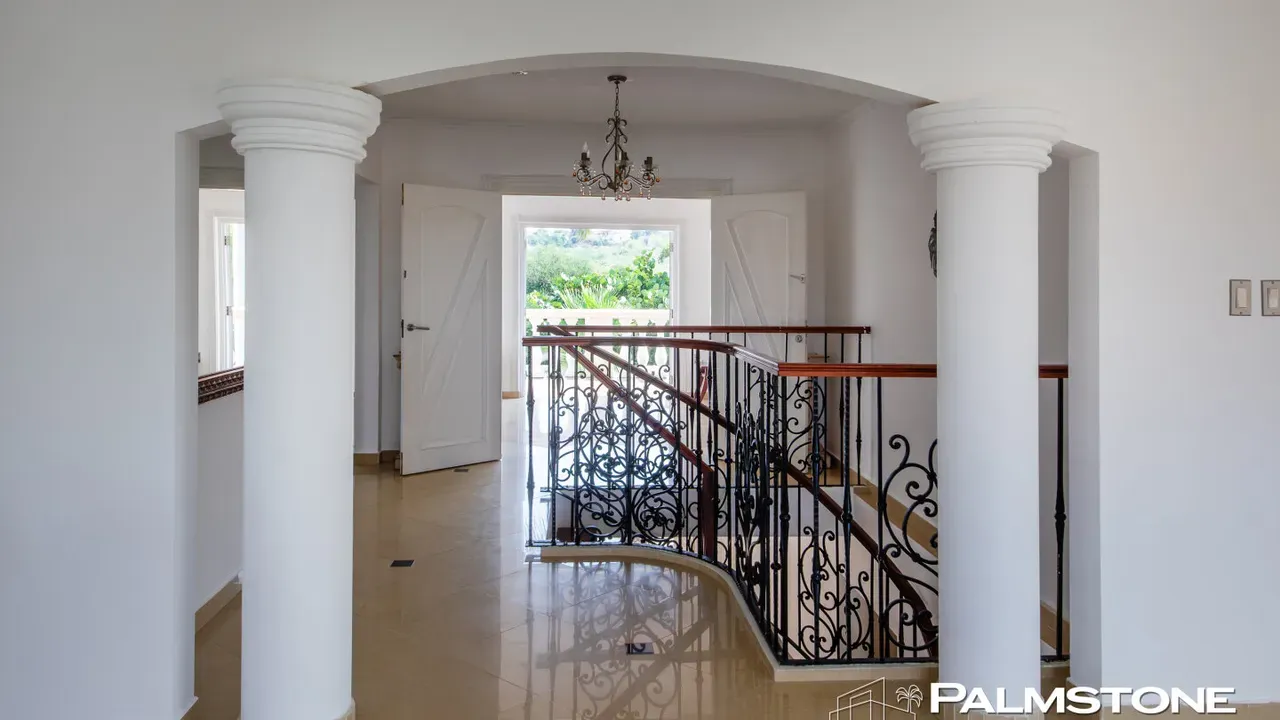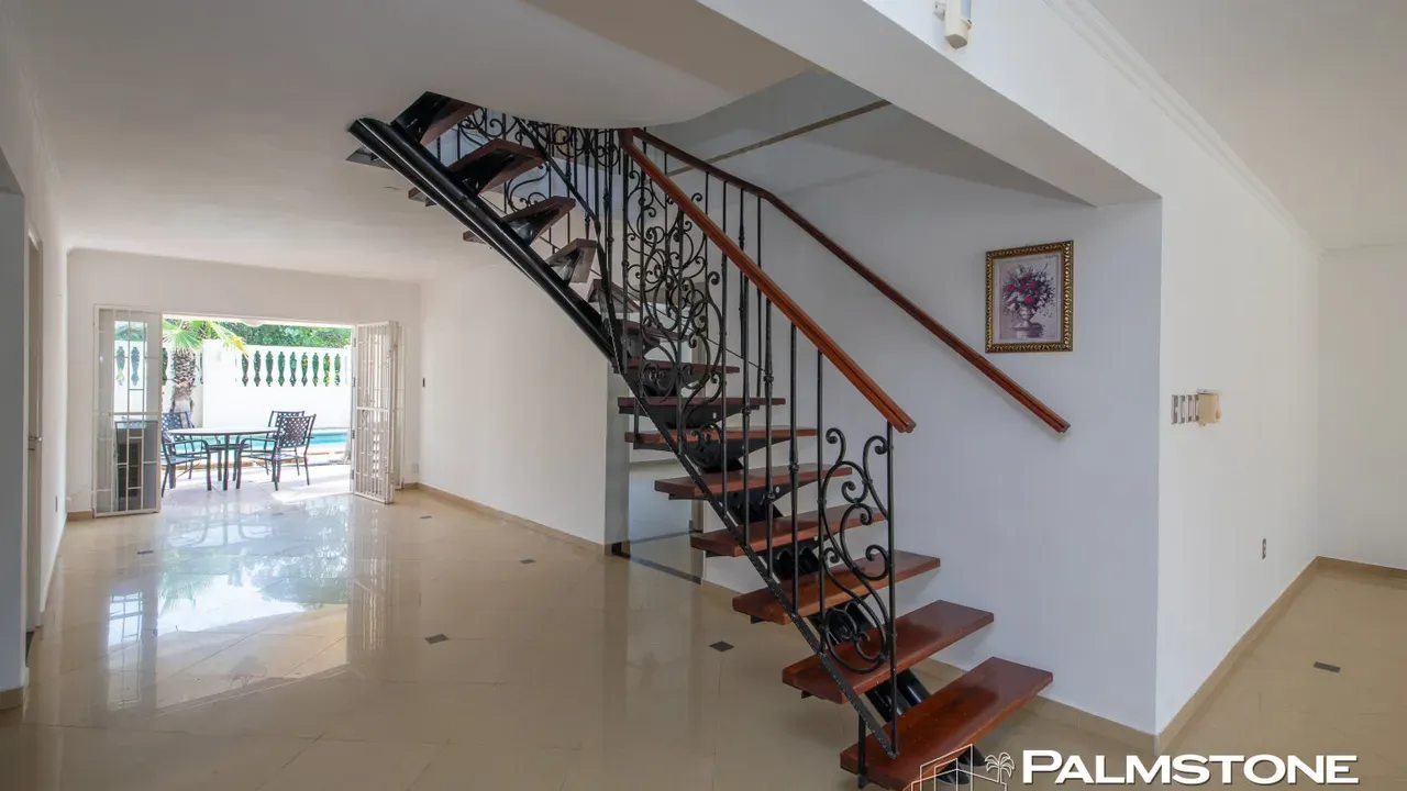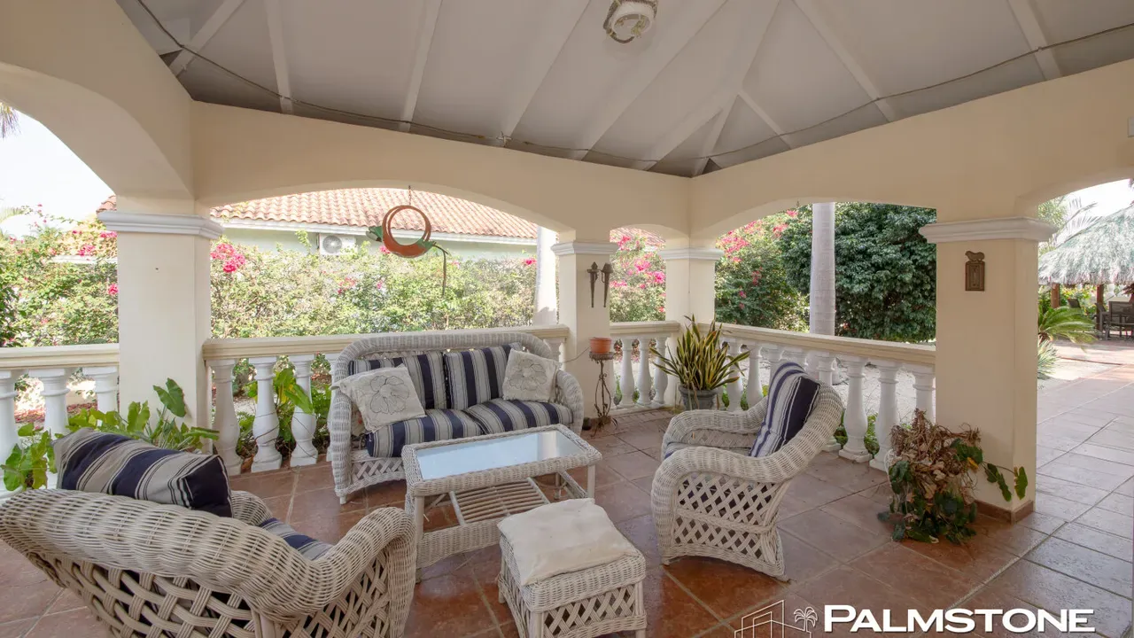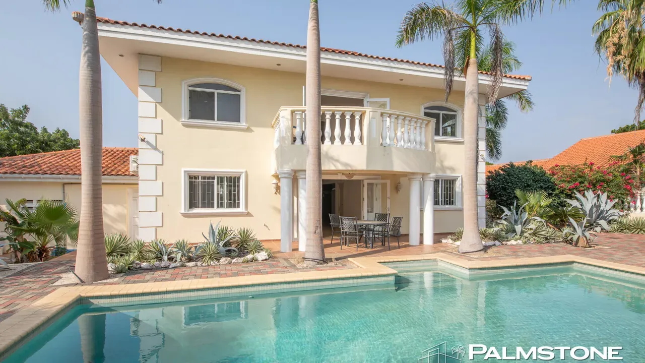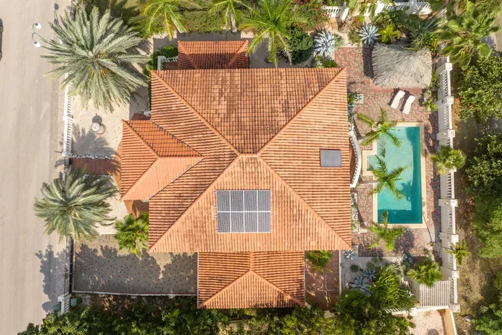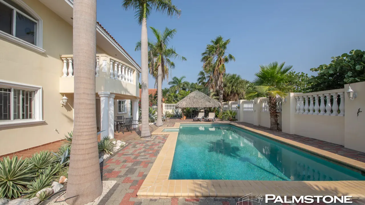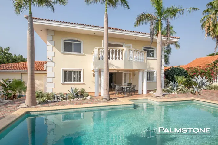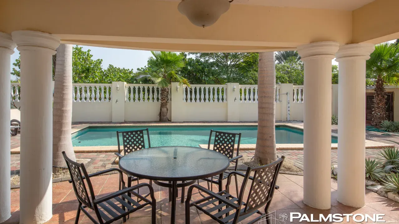 Introducing a remarkable property at villapark Zuurzak, Curacao’s exclusive gated and secured community at the east side of the island, centrally located between Jan Thiel Beach and Mambo Beach from which you have direct access to the beautiful nature reserve "the salt pans". The front driveway, accented with elegant brick trim exudes sophistication, complemented by a spacious 2-car garage and electric gate. The massive, double oak front doors of this elegant home welcomes you to the perfect blend of inside and outside flow and open space design. This home boasts 5 bedrooms and 4 bathrooms, offering exceptional features that define luxury living. Inside, a grand foyer welcomes you with opulent sweeping staircase. The living room features an open floor plan with a woodwork finished cabinets kitchen which creates an airy ambiance, flowing into multiple outside lounge areas. The living room boasts fold-away doors to the backyard, merging indoor and outdoor living. Two guest bedrooms with en-suite baths on the first floor offer convenience. An extra family room with private balcony overlooking the gated community is found on the second floor. The upstairs primary suite provides a walk-in closet, own bathroom and private balcony overlooking the lush garden with royal size pool. The other two guest bedrooms on the second floor share a bathroom. The backyard is an oasis with a pool, palapa lounge and multilple seating areas. A 360-camera system, air conditioners in all bedrooms, a deepwell and more add to the home's appeal. This property offers a truly exceptional opportunity for entertainment and refined living. Feel at home immediately as you step inside!